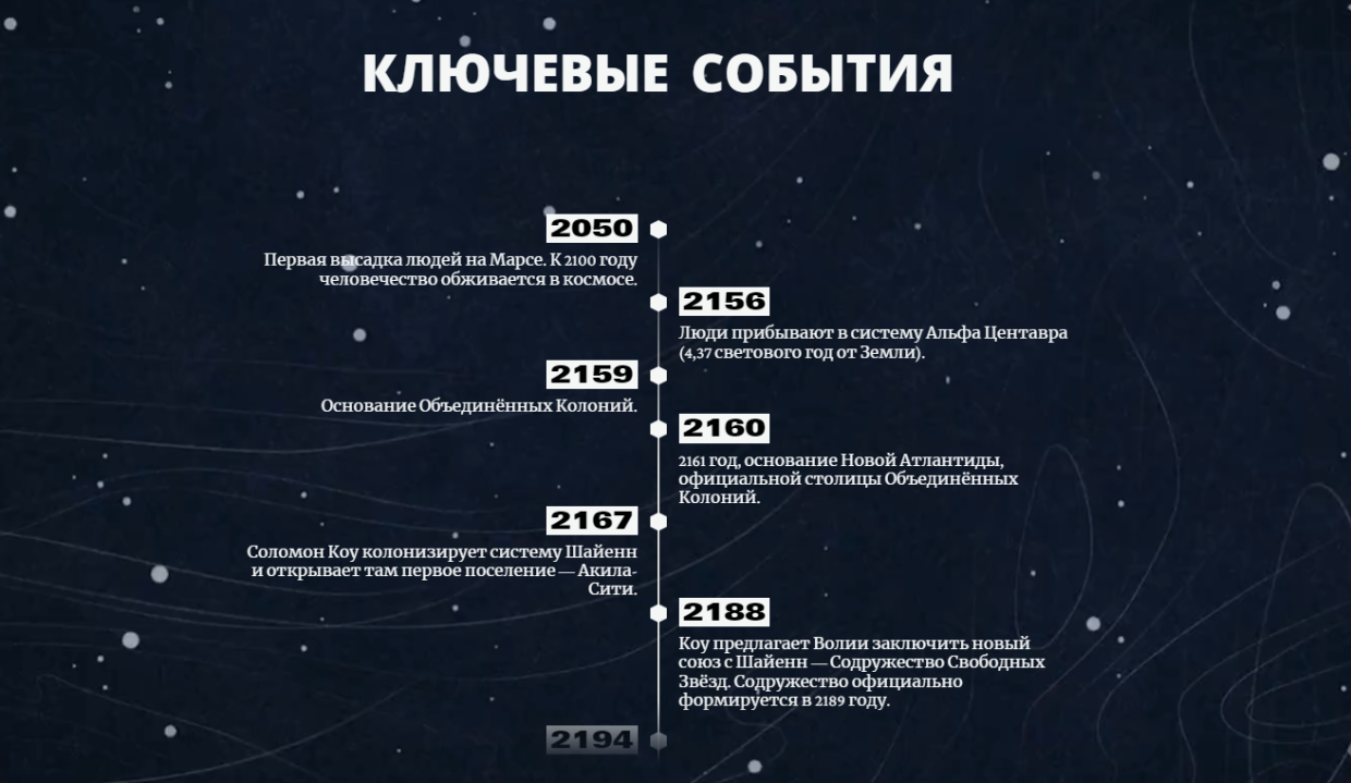 На официальном веб-сайте Bethesda был добавлен новый раздел, посвященный предыстории игры Starfield. В нем авторы представили хронологический обзор главных событий, которые происходили во времена игрового мира - с 2050 по 2328 годы. Увлекательный сюжет космической ролевой игры разворачивается в 2330 году.